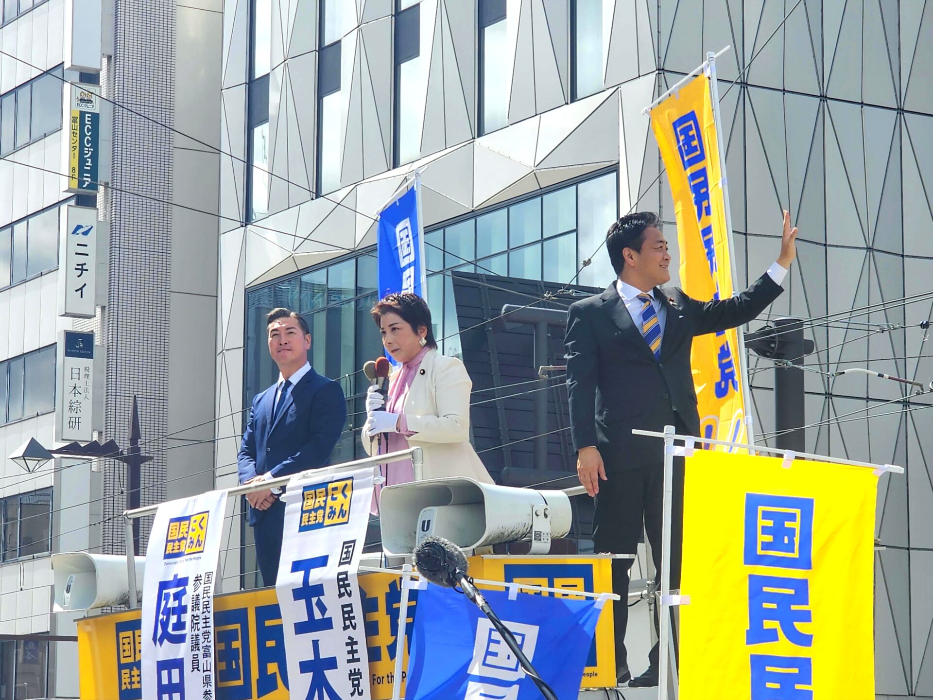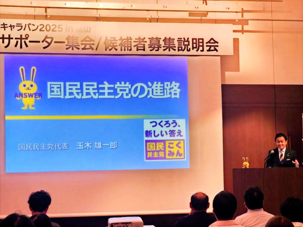 玉木雄一郎代表は21日、国民民主党全国キャラバン2025の一環として富山市を訪れ、党員サポーター集会および候補者説明会を実施した。その後、富山駅前広場にて庭田幸恵県連副代表(参議院議員/富山県)らとともに街頭演説会を開催した。